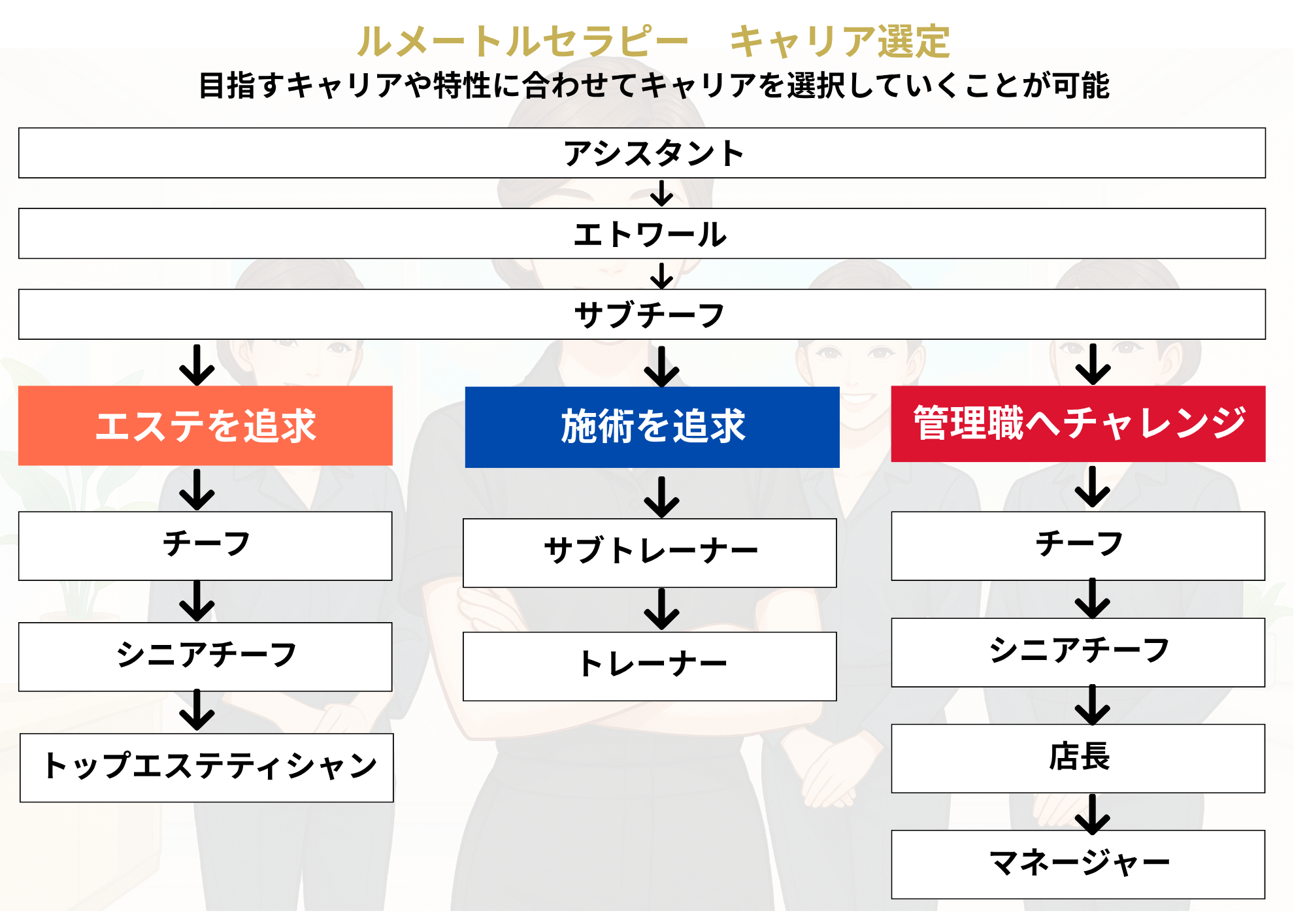 という、エステ業界の”あるある”を解決にむけて全て体系化しております。